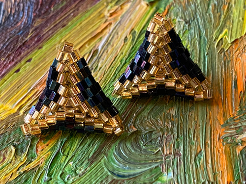 Triangle Beaded Earrings - Solid Blue - 15 size round beads