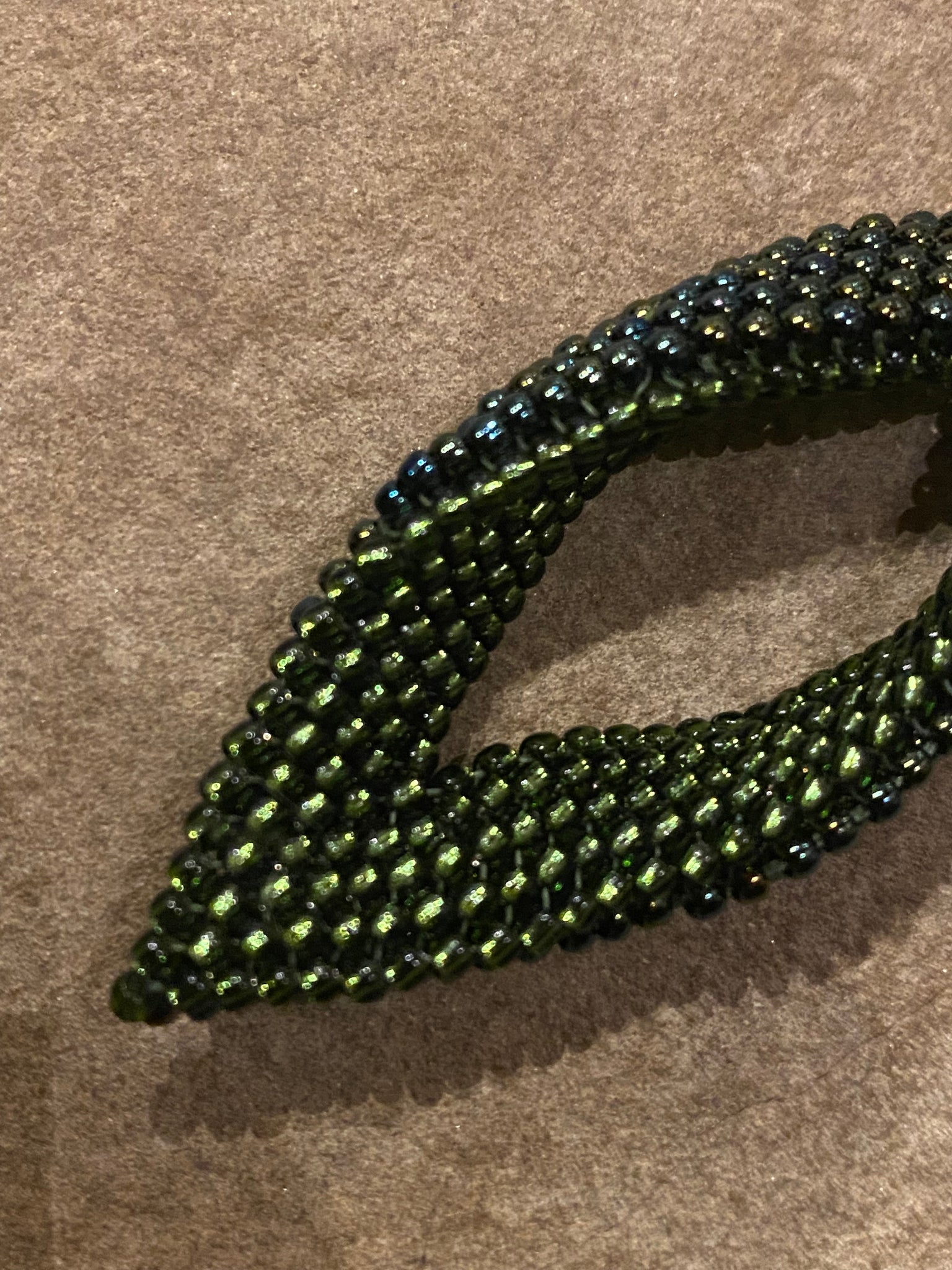 Drop earrings, Metallic Iris Green/Brown and Olive silver lined beads. Wear no matter what the occasion.