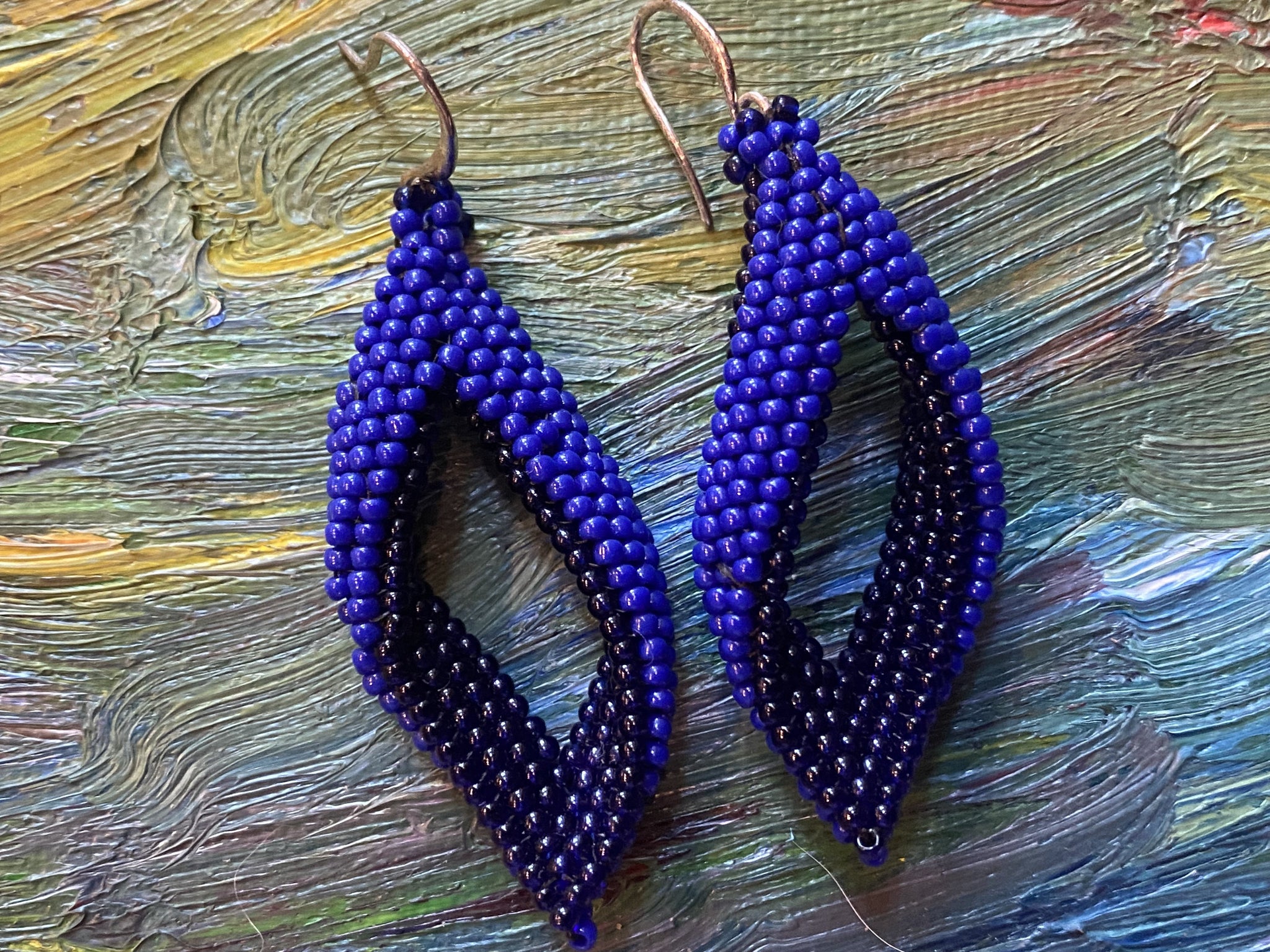 Cobalt and Navy Blue drop earrings. Wear no matter what the occasion. Rose gold colored hook findings