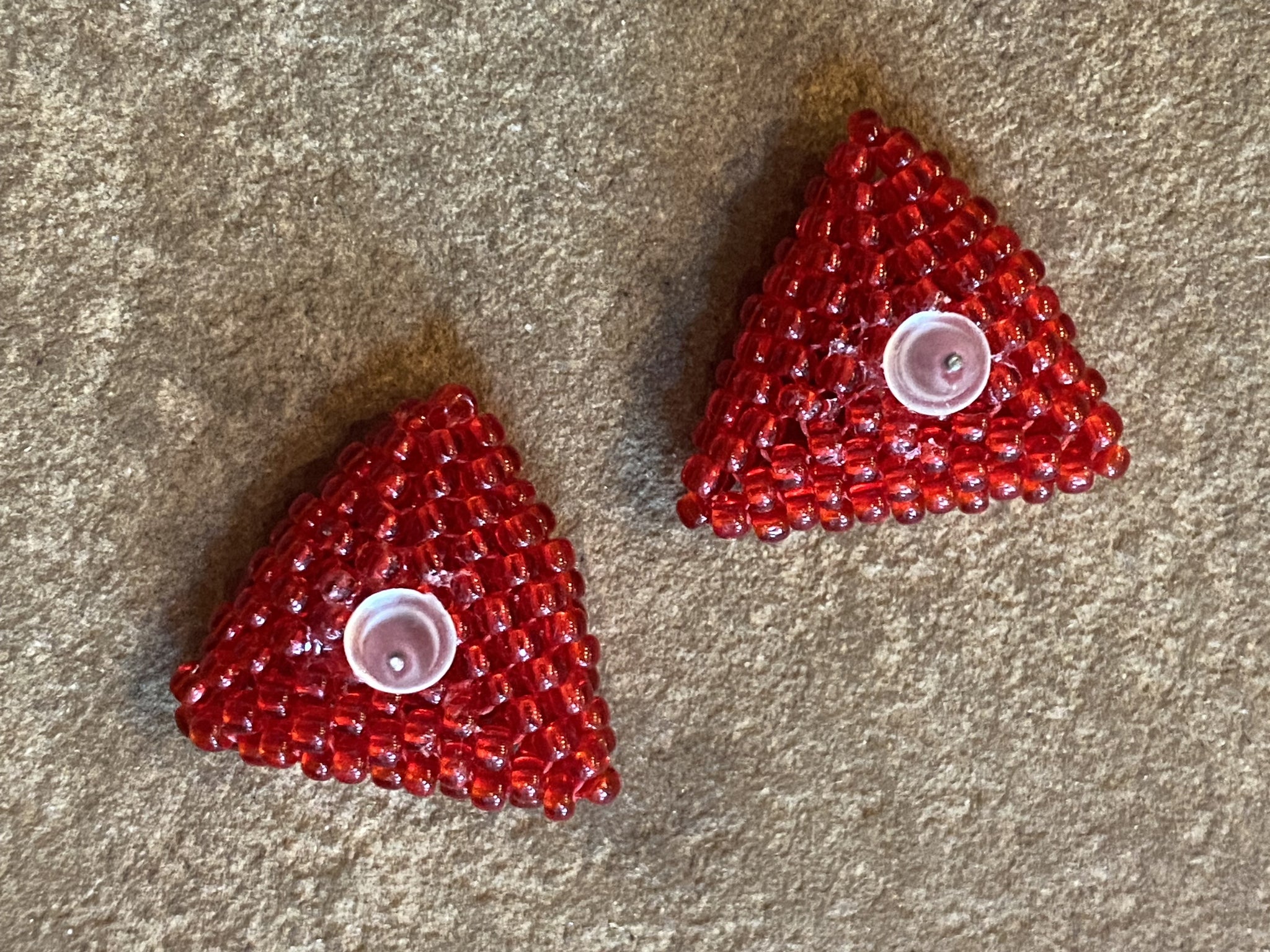 Triangle Beaded Earrings - Red Transparent Round Beads