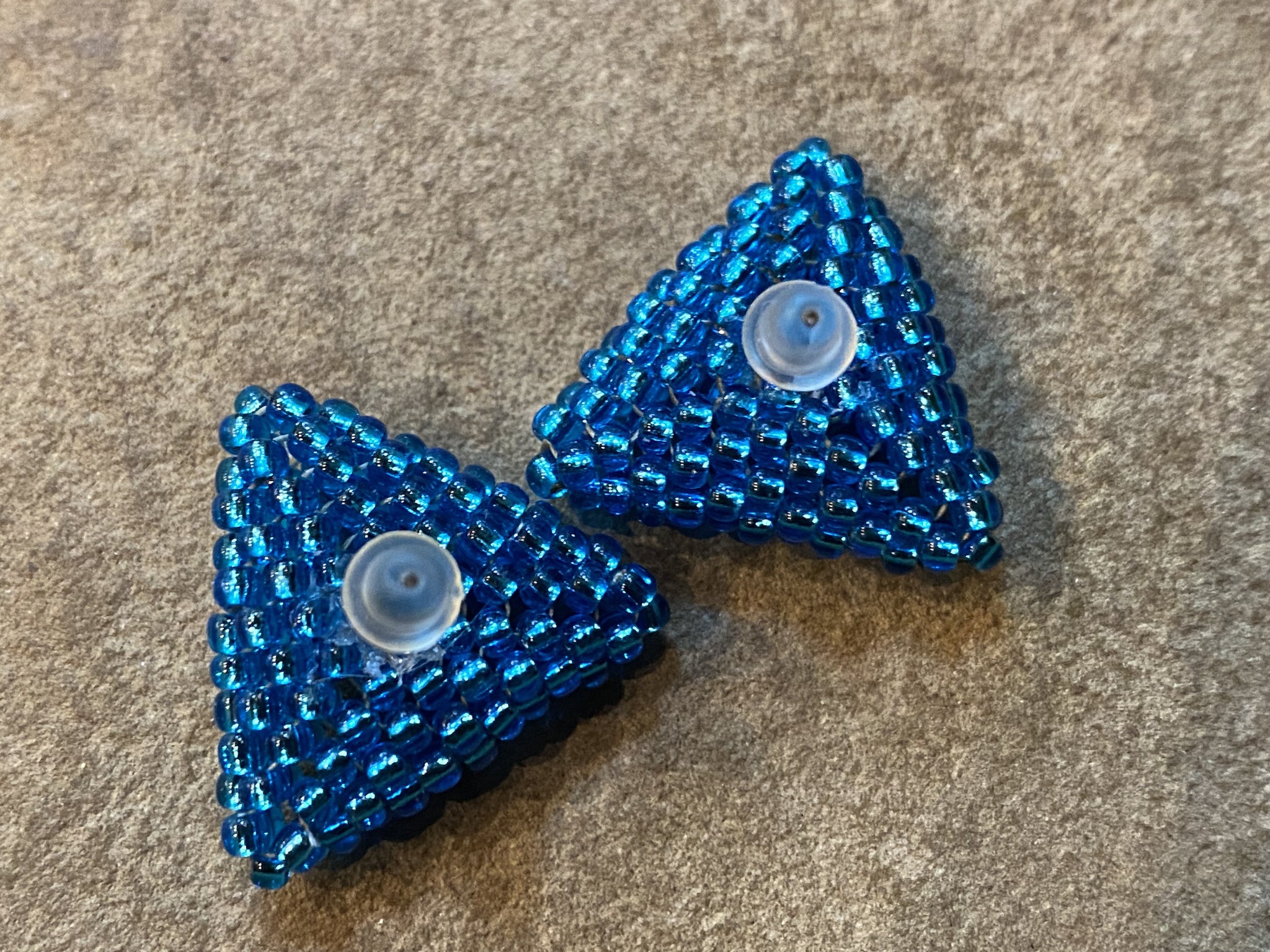 Triangle beaded earrings- Turquoise colored silver-lined Round Beads